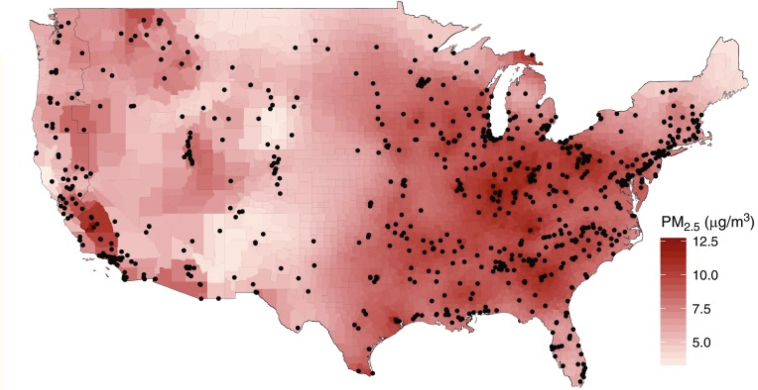 Map showing location of air pollution monitors across the US.
